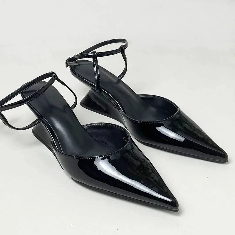 Elegantní lodičky se špičatou špičkou a páskem kolem kotníku. Ideální pro sofistikovaný vzhled, vhodné do kanceláře i na večerní příležitosti. Nízký podpatek kombinuje styl a pohodlí, ideální pro každodenní nošení.