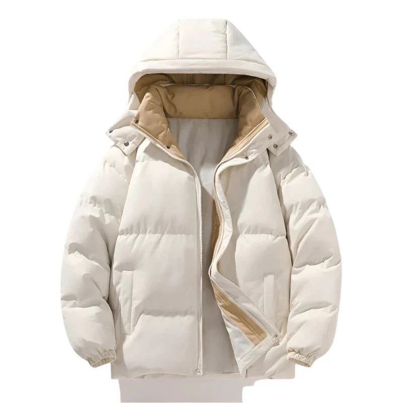 Teplá zimní bunda s kapucí, ideální pro chladné dny. Tato bunda kombinuje ležérní styl s ochranou proti větru pro venkovní aktivity.