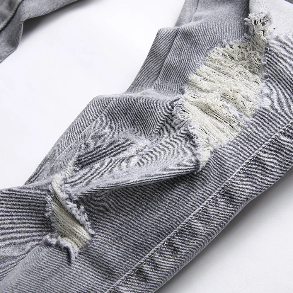 Moderní a výrazné džíny slim fit střihu pro muže s výšivkou hada kombinují odvážný streetwear styl s rafinovanými detaily. Vyrobeno z pružného denimu, který zajišťuje pohodlí a dokonalé padnutí. Distressed design a jemná výšivka dělají z těchto džínů jedinečný kousek pro váš ležérní vzhled.